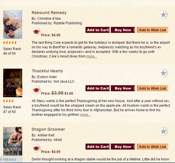 Thankful Hearts pushed into the Top 50 Best Seller list at All Romance! It’s also #19 on their Hot Deals list! I’m so excited that I’m having a hard time focussing on the work I need to get done for tomorrow!